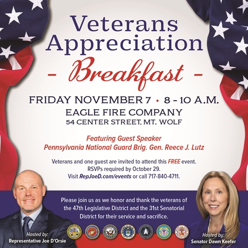 We’ve reached full seating capacity for this breakfast. If you’d like to be contacted if a spot opens, or to hear about future veterans events, please send us your information!